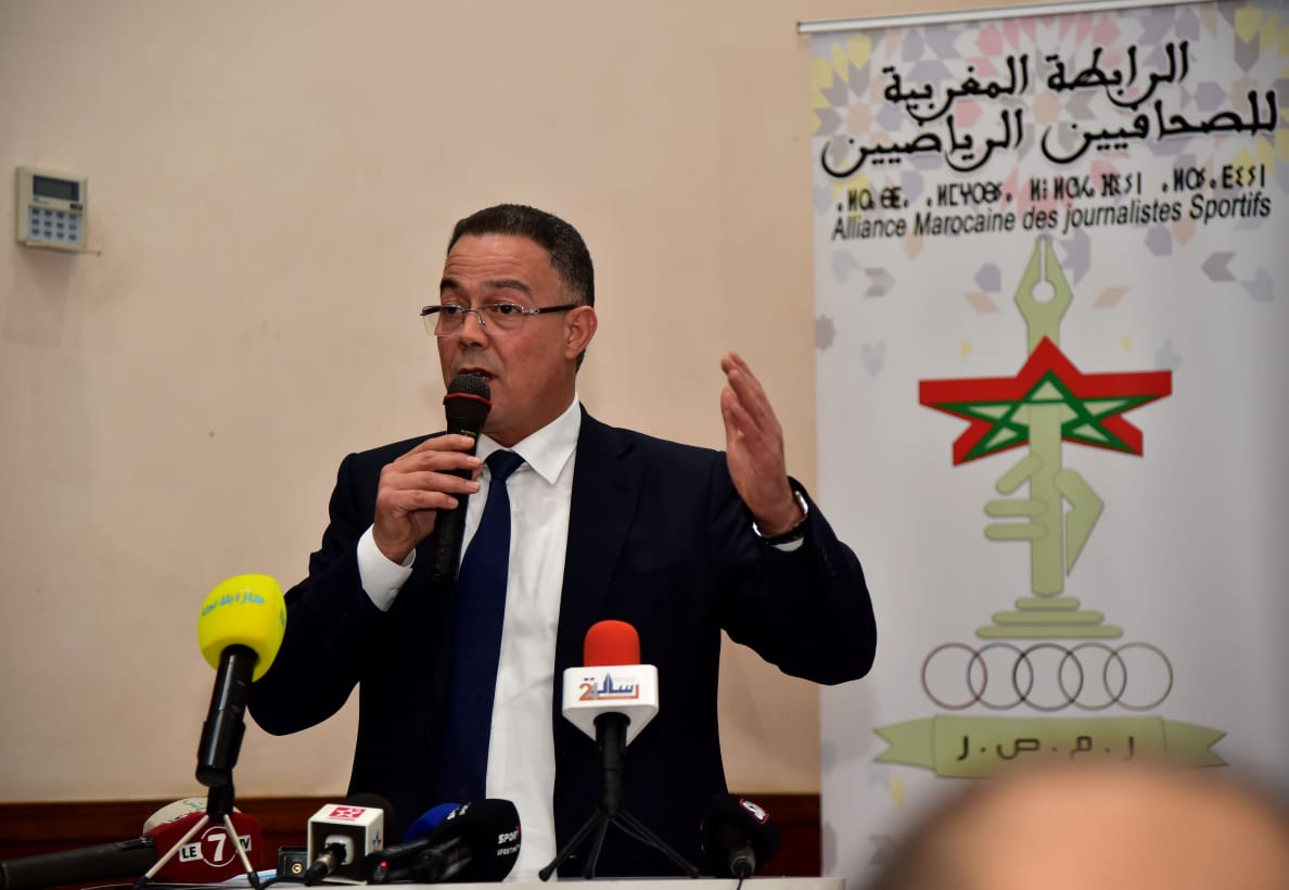 السيد فوزي لقجع يشارك في الندوة التي نظمتها الرابطة المغربية للصحافيين الرياضيين بخصوص الشركات الرياضية