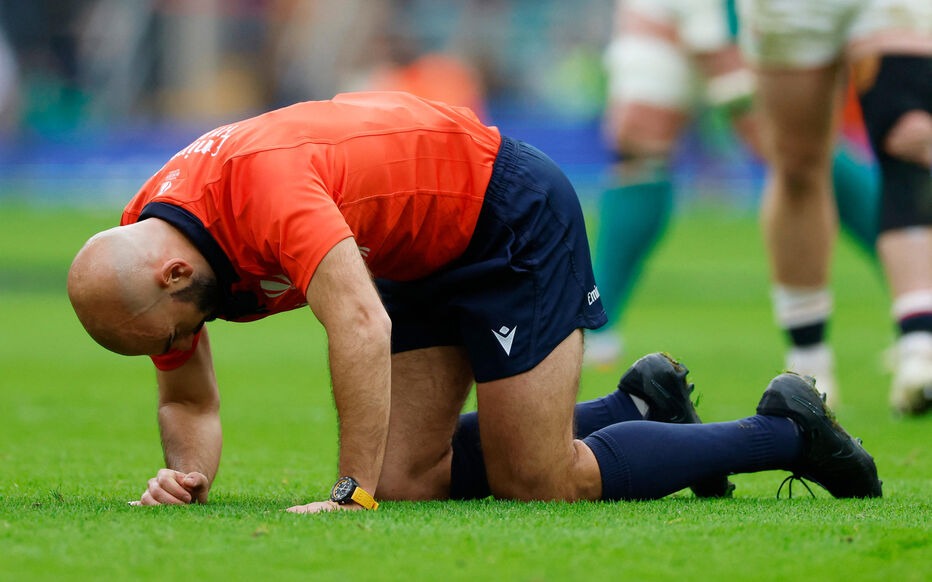 في دوري الأمم الست للريكبي، الحكم الإيطالي يتعرض لتمزق عضلي أثناء مباراة إنجلترا وإيرلندا وفرنسي يعوّضه