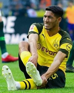 أعلن نادي بروسيا دورتموند صباح اليوم، عن إصابة محترفه المغربي أشرف حكيمي بكسر على مستوى قدمه اليمنى ،خلال المباراة التي تفوق من خلالها يوم السبت الأخير على فولفسبورغ بهدفين لصفر.