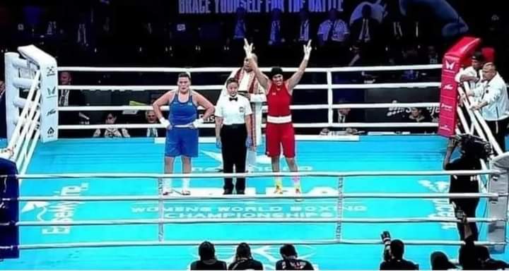 خديجة المرضي تفوز بالميدالية الذهبية، وببطولة العالم للملاكمة وزن اكثر من 81كلغ سيدات.